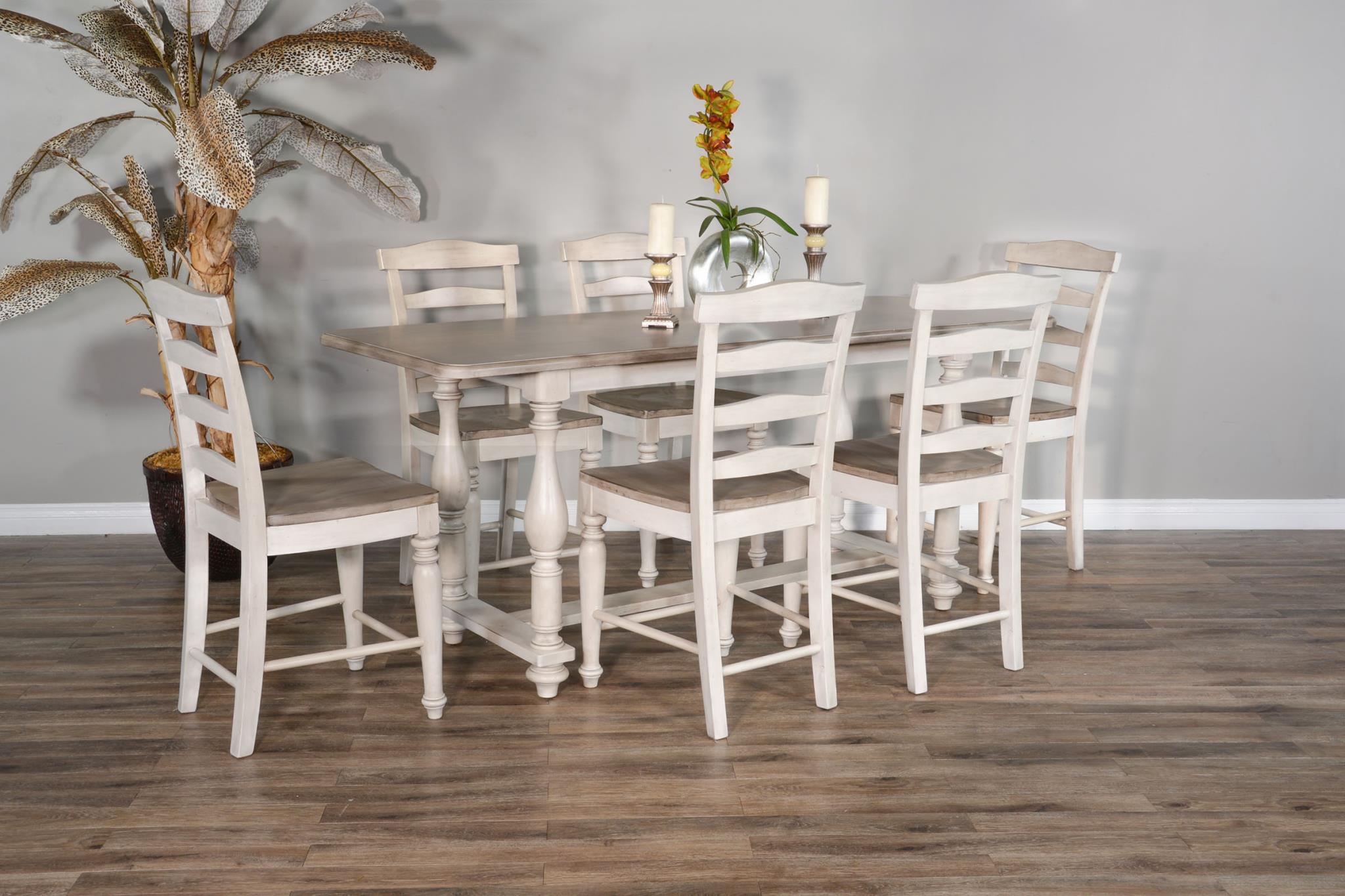 The Westwood Village counter height table is the perfect choice for smaller conventional sized spaces. Notice the beautiful tone on tone finish, flyspecking and burnish, give the finish dimension and depth. Its base features levelers. All pieces were built with high-quality mahogany solids and veneers.