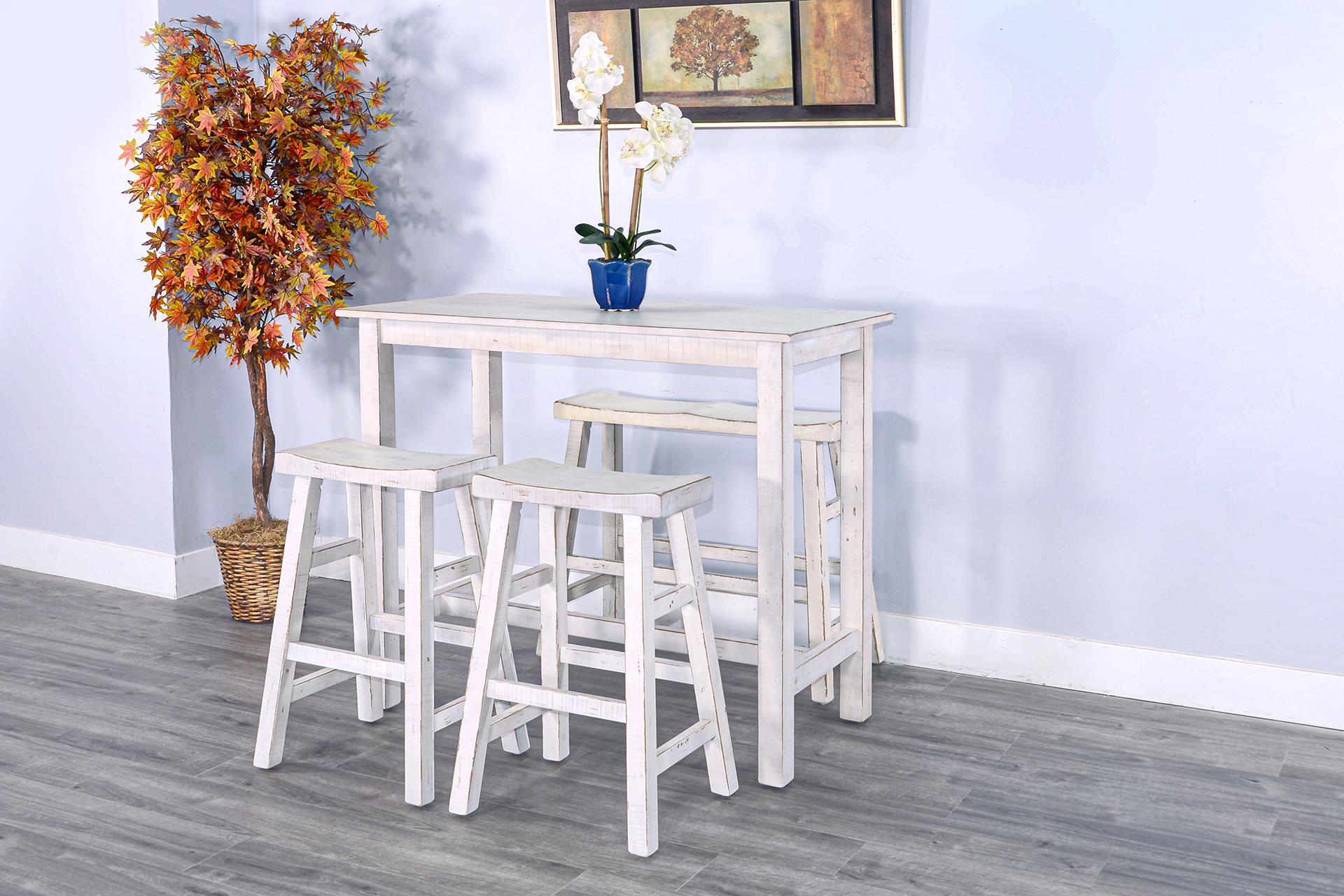 The Marina Collection has a fun, refreshing blend of character with several finishes that may be combined to bring color and life to any room. This pub table set is an example of a practical, sturdy, and well-balanced design full of beauty and vitality.