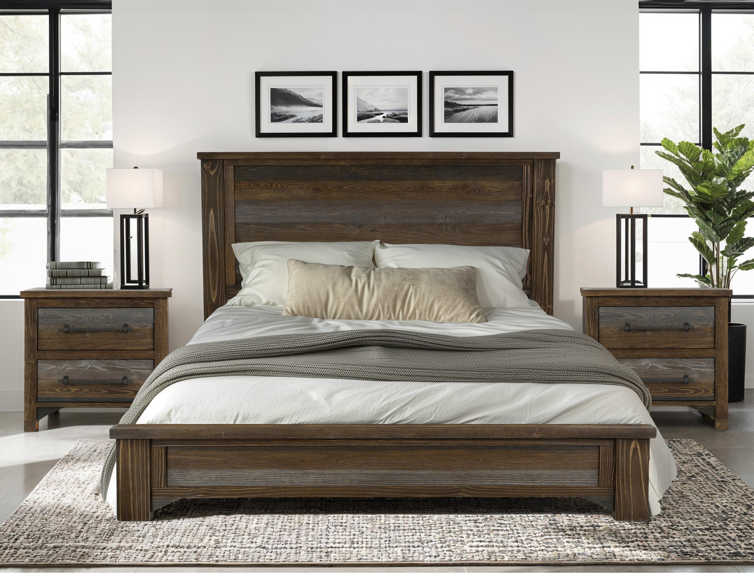 Elevate your bedroom environment with the Town collection, a beautiful blend of rustic style and modern sophistication. Each piece features a multi-step lacquer finish that highlights rich brown and gray tones, enhancing the wood's natural beauty. Crafted from pine and poplar, this collection boasts a wire-brushed wood texture for added character. This beautifully designed bedroom set will transform your space and leave a lasting impression.