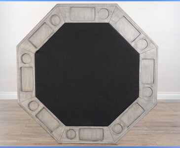 The collection is crafted with mahogany solids and veneers. It has a collection may be used for dining. The rough sawn distressing flows in the bar and back bar harmonizing every piece in a beautifull Alpine Grey finish