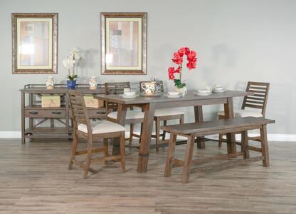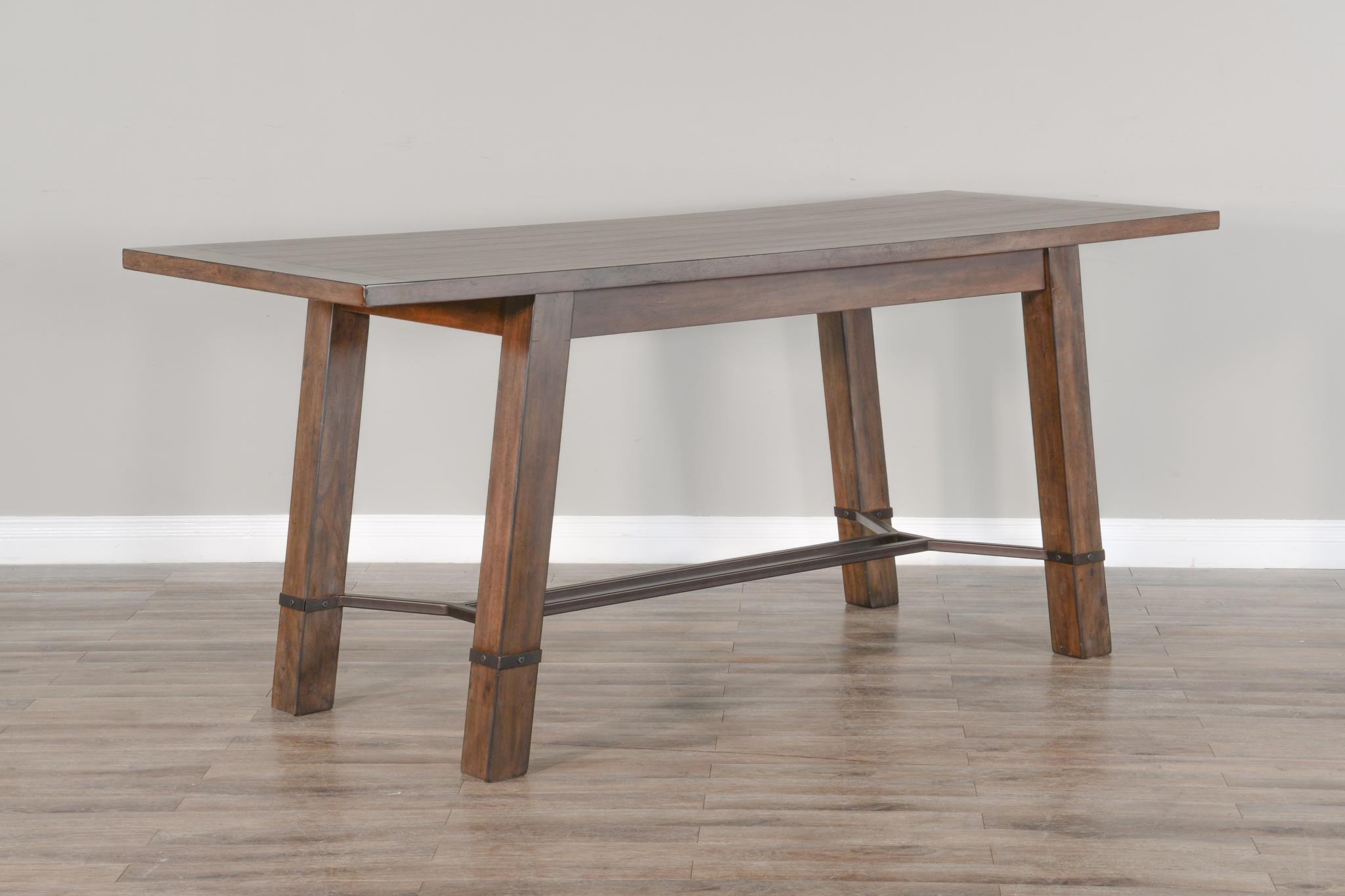 This rectangular counter height table is constructed with mahogany solids and veneers. The metal stretcher framing and accents give it a unique feel that flows through each piece. The refined server has a metal backsplash and two drawers for utensils