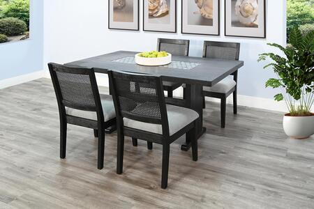 The Geovanni dining set is constructed with wire-brushed mindi solids and veneers. This set is ideal for small to medium spaces and is complemented by a drop-leave server that provides lots of storage, The chairs feature a comfortable rattan back and cushion seat.
