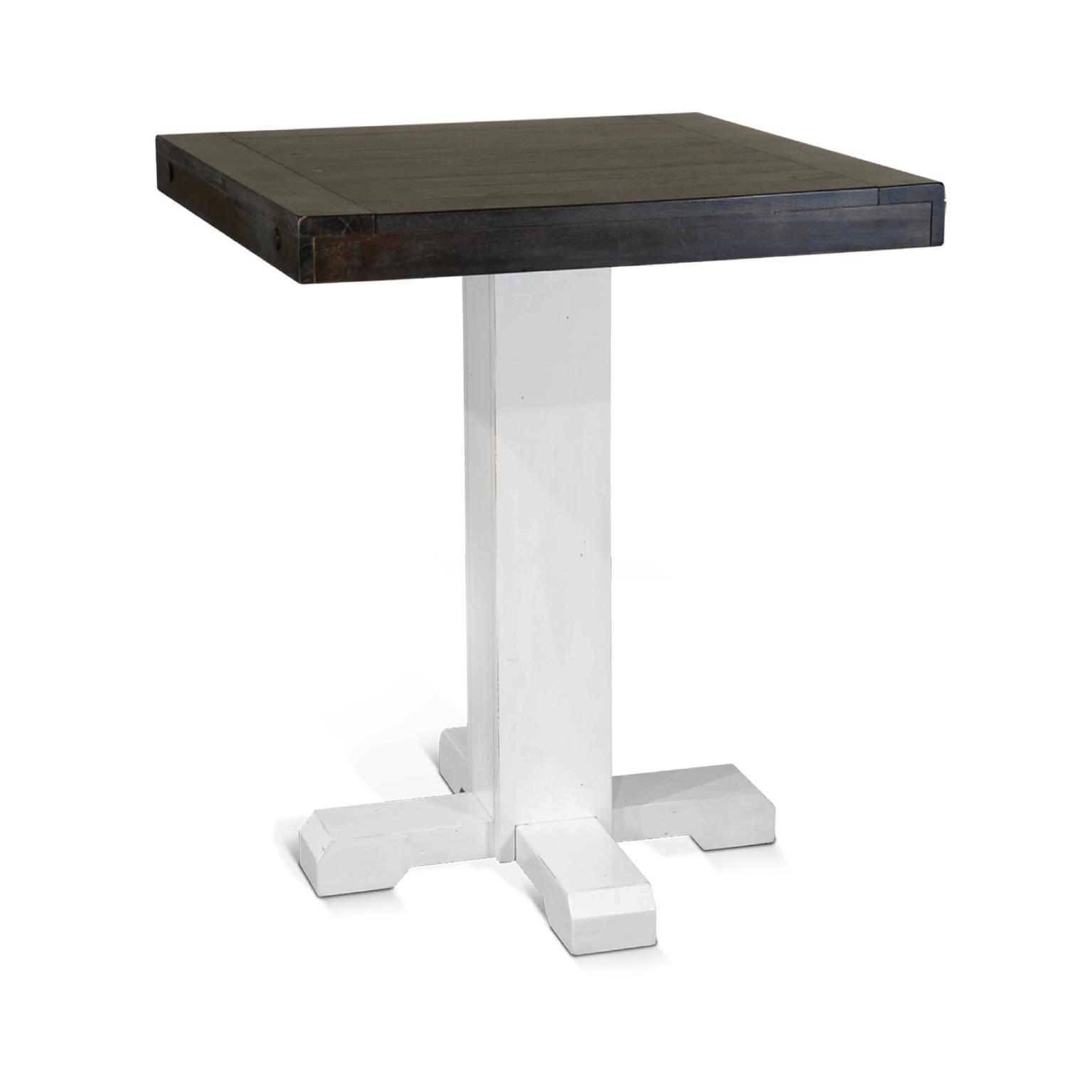 The pub table is the perfect addition to any small kitchen or game room. Crafted with mindi and mahogany solids and veneers