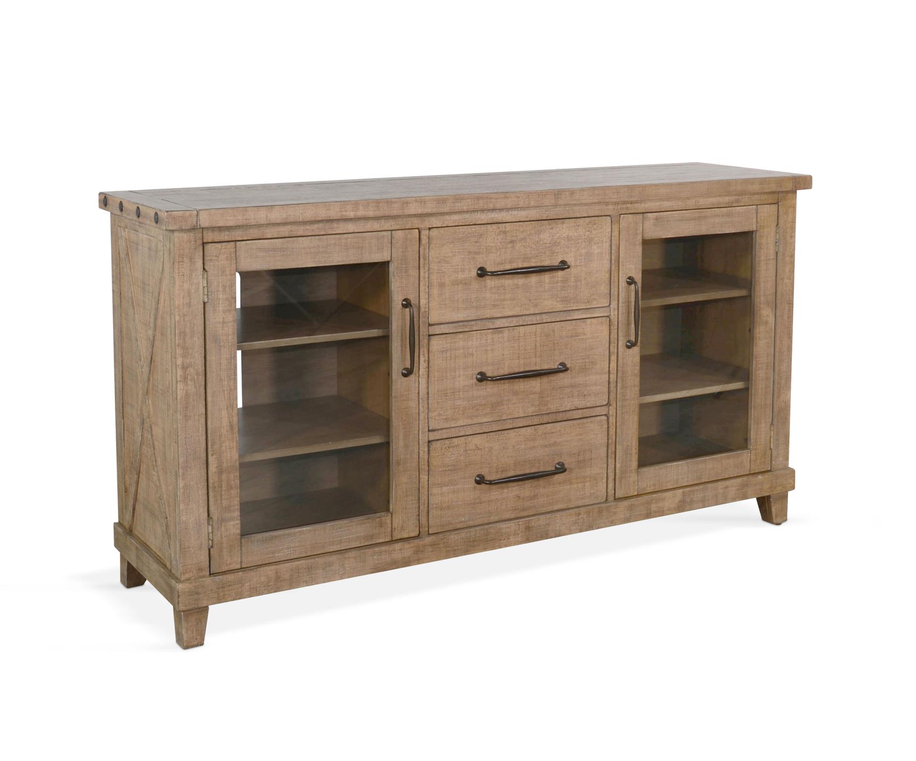 The Vivian Collection was built with rough sawn mahogany solids and veneers. This is an eclectic piece that borrows contemporary, industrial, and traditional trades all elegantly combined.