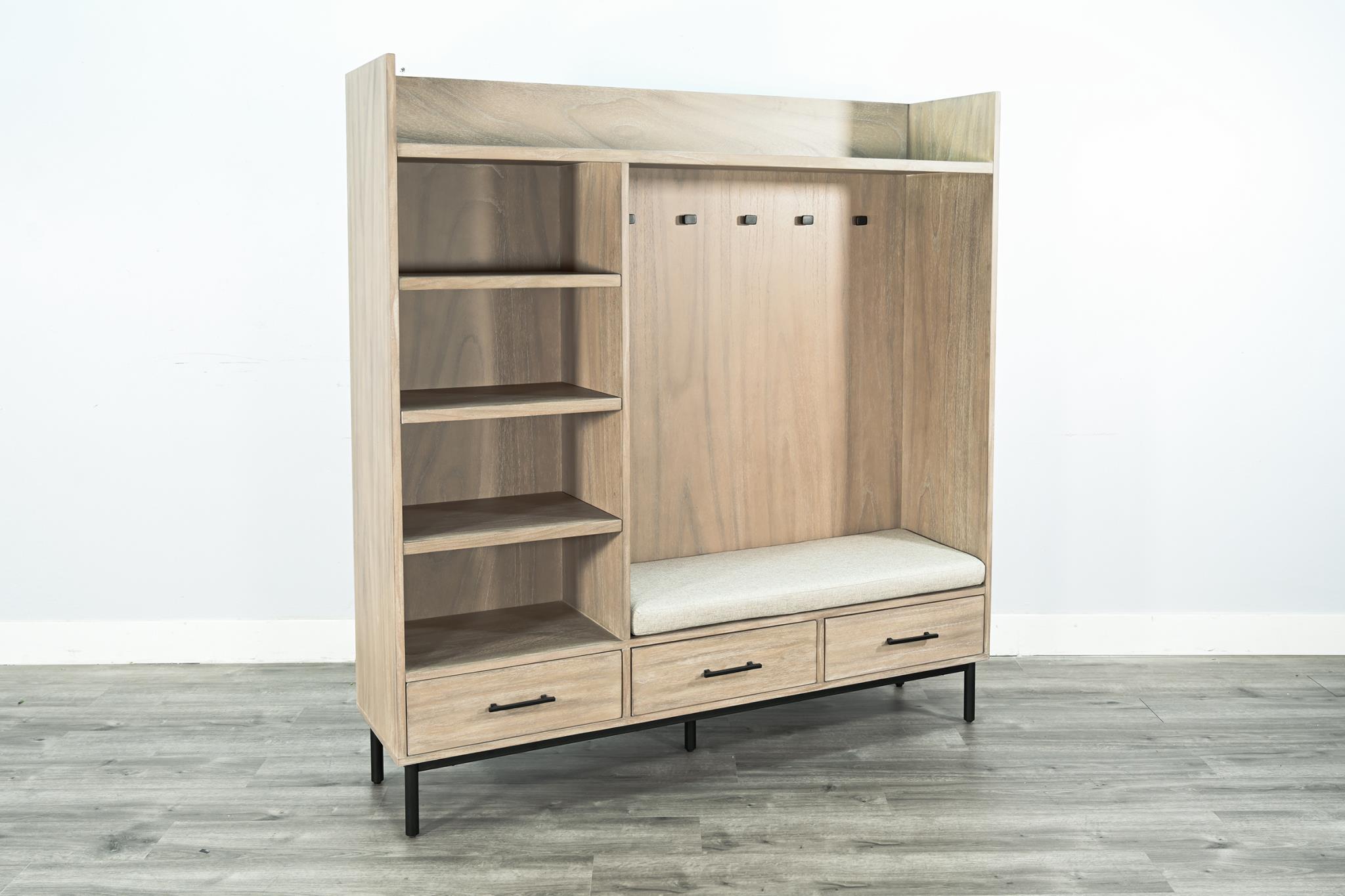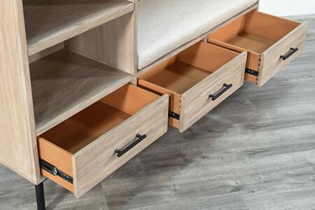 The Jenny Hall Tree is an excellent addition to any entryway or mudroom. Featuring a top shelf and five hooks, it provides a convenient place to hang coats, hats, and other accessories. Additionally, the three drawers offer extra hidden storage space, enhancing both functionality and convenience