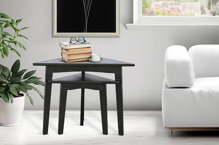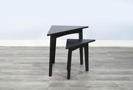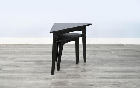 The Bijou Triangular Nesting Table is crafted from wire-brushed mindi solids and veneers, this stylish set showcases a beautiful Umbra finish. Designed for simple assembly and ready to assemble (RTA), these versatile tables provide both function and elegance to any room. Perfect for compact spaces or as accent pieces, the Bijou Triangular Nesting Table adds a touch of sophistication to your home decor.
