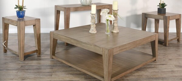 The occasional set is constructed with distressed mahogany solids and veneers. This occasional table set is sleek, transitional-modern, and elegant with a bold construction and enunciated design