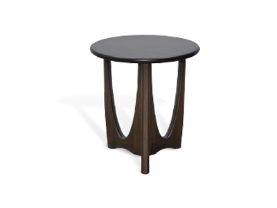 The occasionals are constructed with mahogany solids and veneers. Their bases have a unique sculpted double U-shaped design. Finished in Coffee Bean, these tables will add character to any room