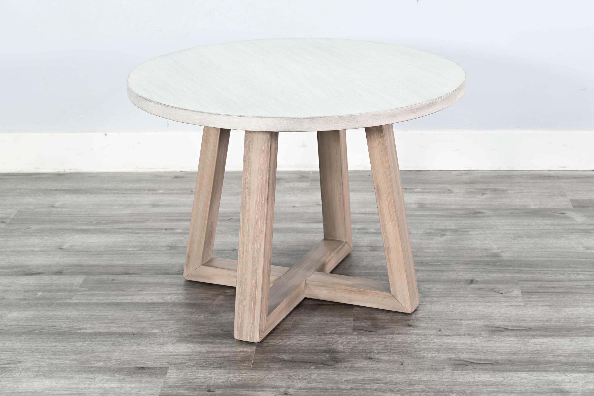 These Rowan round occasional tables were designed in a contemporary style. We used wire brushed mindi wood solids and veneers in their construction to emphasize the delicate beauty of the wood grain and soft curved edges.