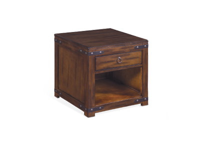 The Santa Fe occasional set is constructed with rustic hardware accents, and built with mahogany solids and veneers. The beautiful Dark Chocolate finish is enhanced by the natural wood grain that shows subtle distress. The coffee table has casters, and a lift top that provides access to inside storage.