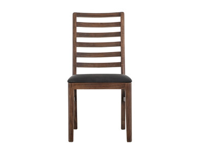 Experience the Walnut Collection Chair, made from melina wood. It has a translucent lacquer finish in a rich reddish-brown color that highlights the wood''s natural beauty. The chair features a ladder-back design and a cushioned seat covered in brown fabric for comfort and style. Its sturdy legs and simple design make it a great fit for your dining room or any space in your home. The Walnut Collection Chair is both functional and stylish, making it a lasting addition to your home.