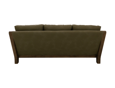 Transform your living space with this stunning wooden-framed sofa, which perfectly combines craftsmanship and comfort. The Xel-Ha II Collection features tufted back cushions upholstered in a green leather-like fabric, providing plush support and an elegant touch. The decorative throw pillows add a charming and warm accent to the overall design. What truly sets this collection apart is its beautifully designed, gently curved armrests, enhancing its aesthetic appeal and ergonomic comfort. The turned wooden legs, with their intricate detailing, showcase timeless sophistication. Redefine your space with furniture that makes a statement because every home deserves a touch of artistry.