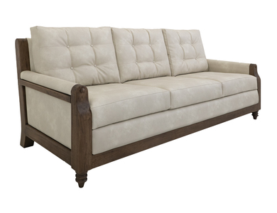 Transform your living space with this stunning wooden-framed sofa that perfectly combines craftsmanship and comfort. The Xel-Ha II Collection features tufted back cushions upholstered in ivory leather-like fabric, providing plush support and an elegant touch. The decorative throw pillows add a charming and warm accent to the overall design. What truly sets this collection apart is its beautifully designed, gently curved armrests, enhancing its aesthetic appeal and ergonomic comfort. The turned wooden legs, with their intricate detailing, showcase timeless sophistication. Redefine your space with furniture that makes a statement because every home deserves a touch of artistry.